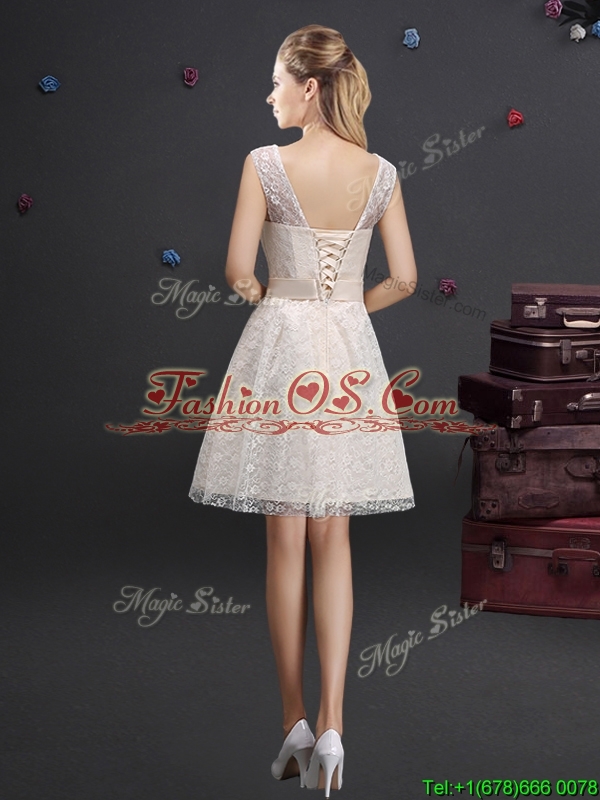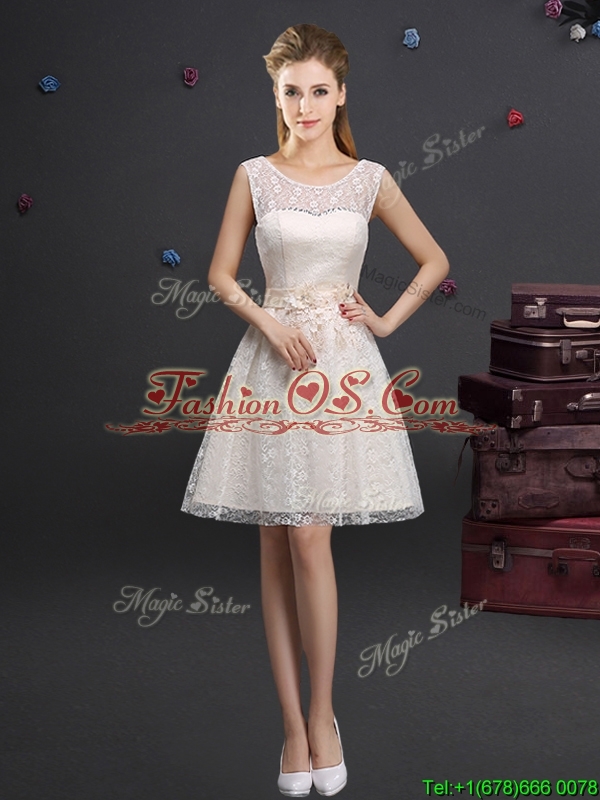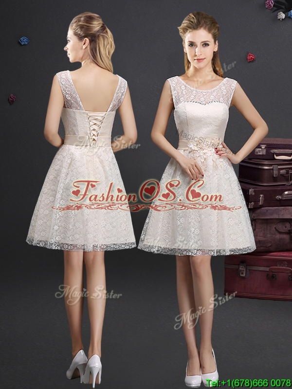 2017 Lovely See Through Scoop Short Prom Dress with Appliques and Lace