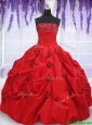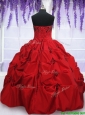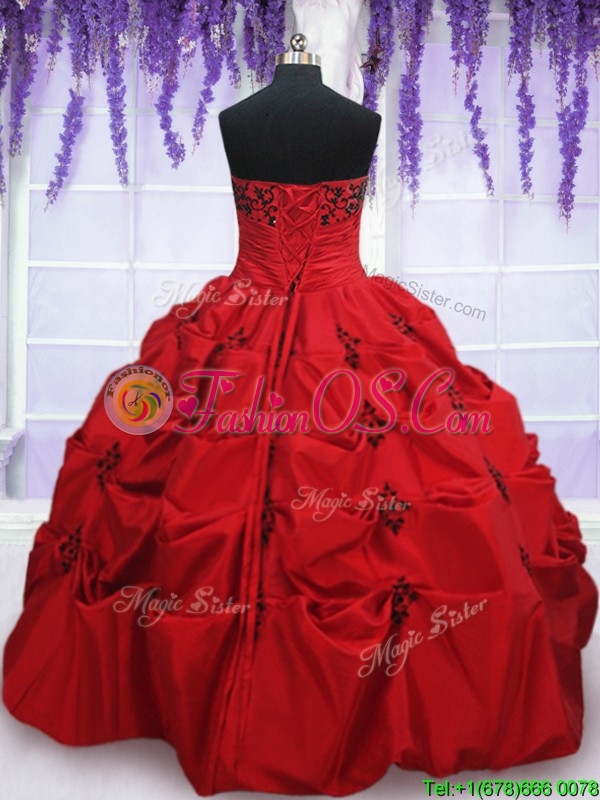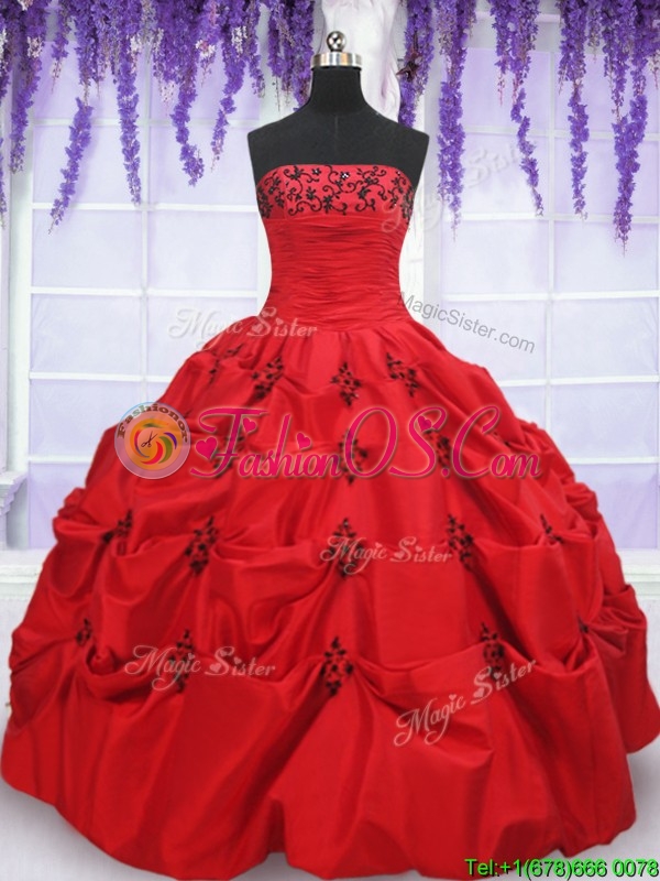 2017 Luxurious Strapless Applique and Bubble Red Quinceanera Dress in Taffeta