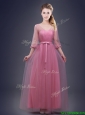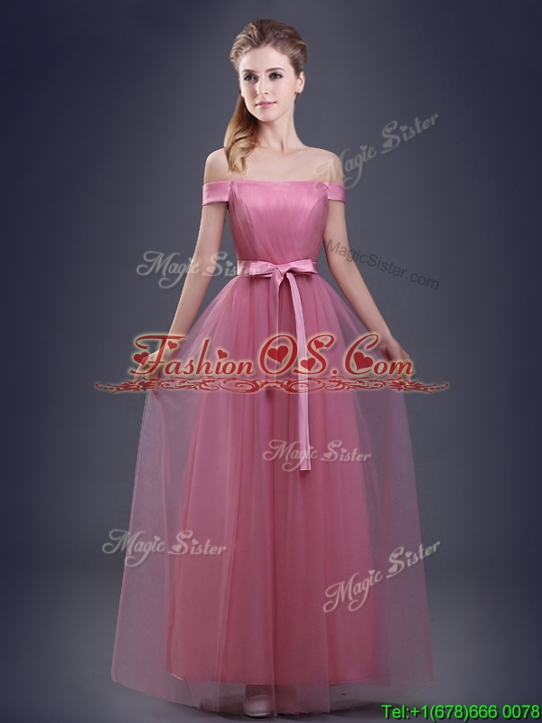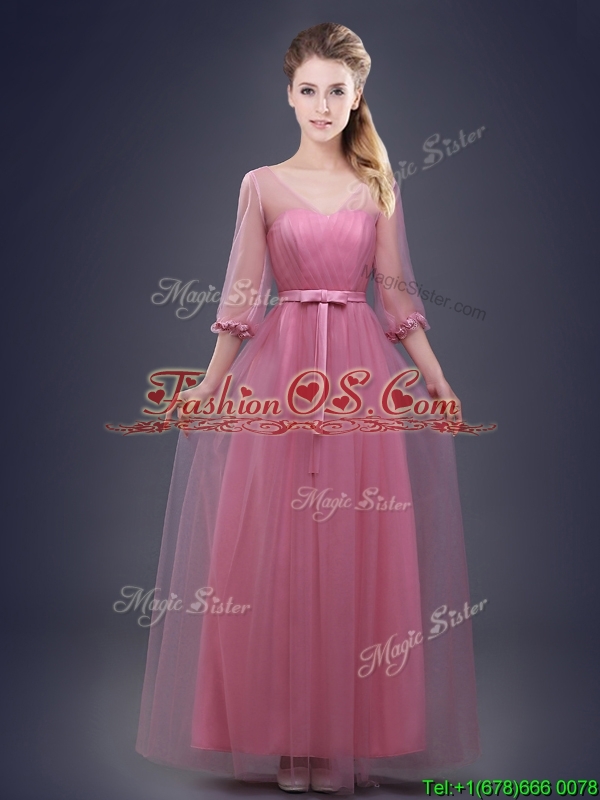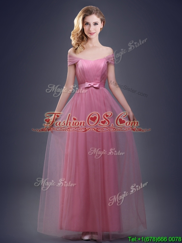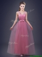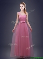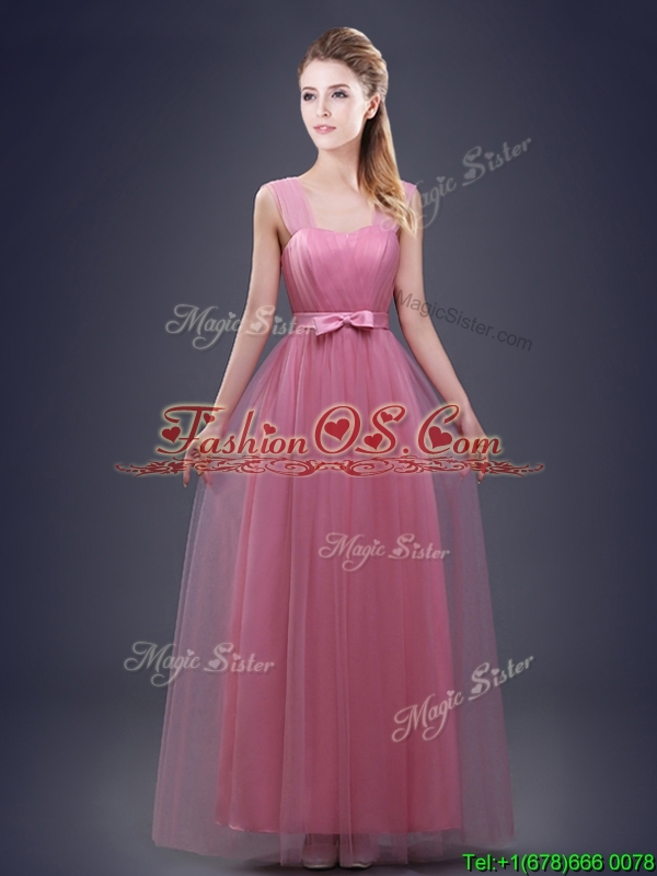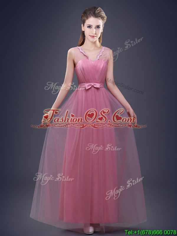 2017 New Arrivals Empire Red Long Dama Dress with Bowknot and Ruching