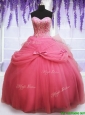 2017 Perfect Tulle Watermelon Red Quinceanera Dress with Beading and Bowknot
