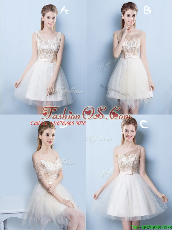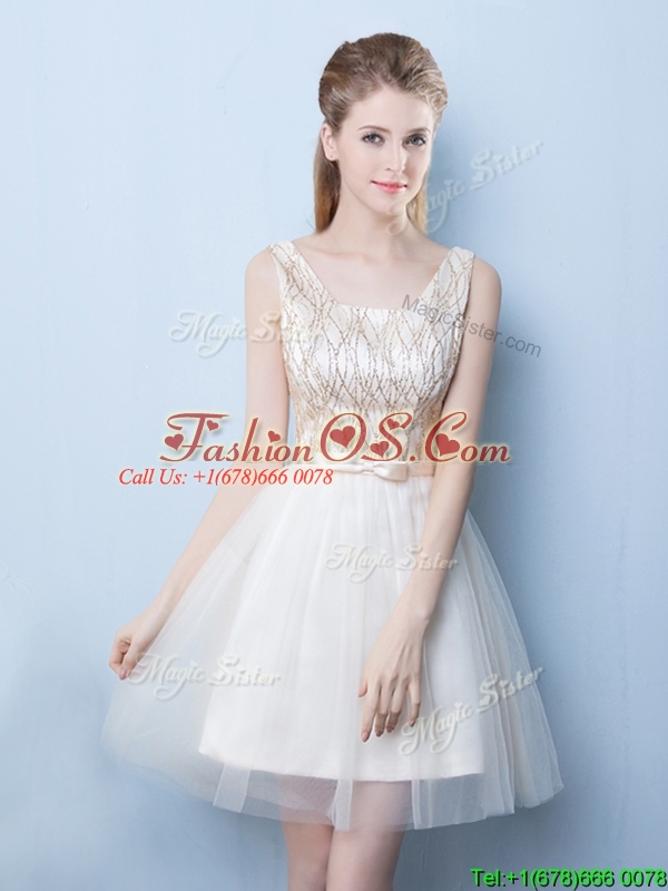 2017 Popular Champagne Square Short Prom Dress with Sequins and Bowknot