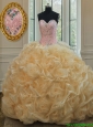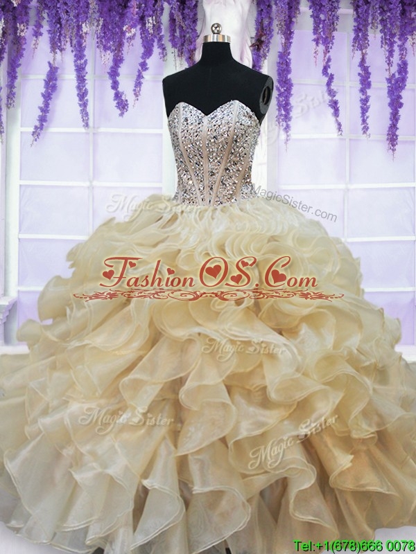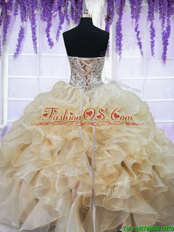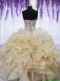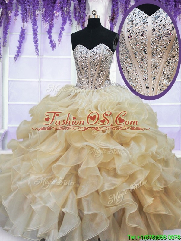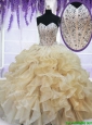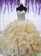 2017 Pretty Visible Boning Beaded Ruffled Quinceanera Dress in Champagne