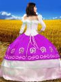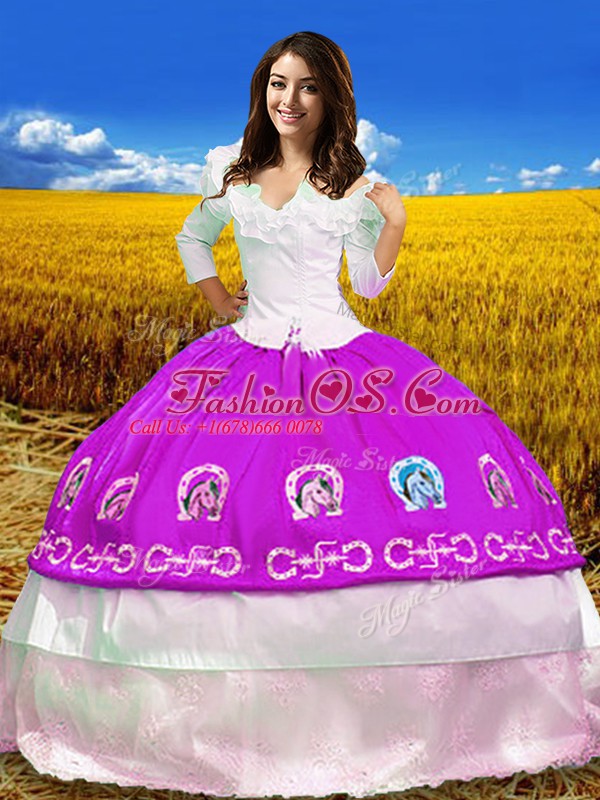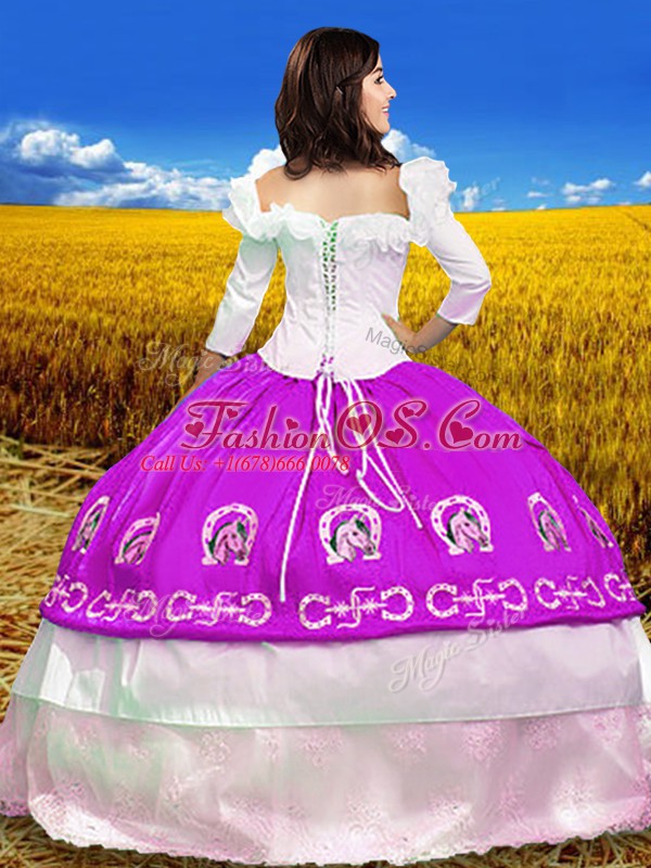 3 4 Length Sleeve Embroidery Lace Up Ball Gown Prom Dress
