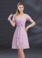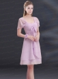 A Line Square Ruhing Prom Dress with Cap Sleeves