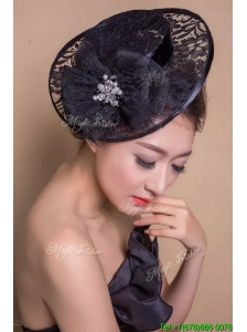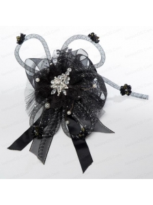 Unique Net Yarn and Rhinestoned Headpieces in Black for Party