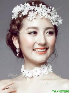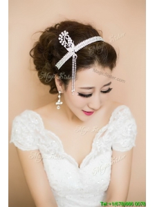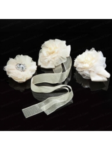 Popular White Headpieces with Rhinestone and Hand Made Flowers