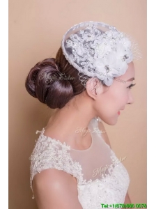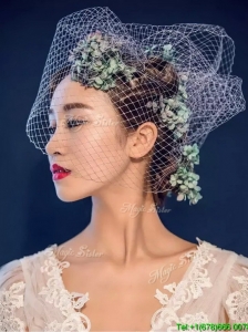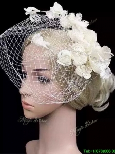 Fashionable White Headpieces with Hand Made Flowers and Net Yarn Bridal Hat