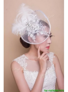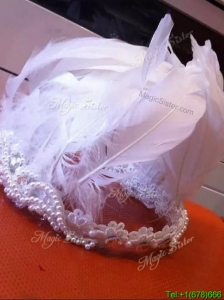 Modest White Headpieces with Beading and Feather