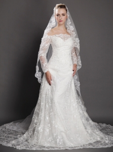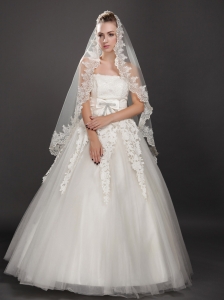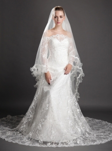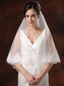 Discount Tulle With Lace Appliques Bridal Veil On Sale
