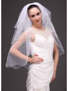 Three-tier Tulle With Pearls Wedding Veil