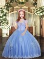 Home >  Special Occasion Dresses >  Pretty Little Girl Pageant Dresses > Admirable Baby Blue Sleeveless Floor Length Appliques Lace Up Little Girls Pageant Gowns