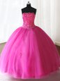 Admirable Hot Pink Ball Gowns Tulle Strapless Sleeveless Beading Floor Length Lace Up Quince Ball Gowns