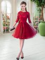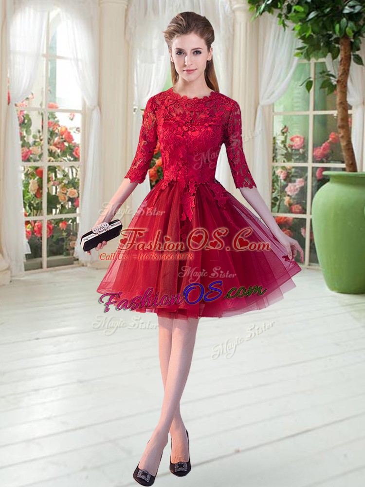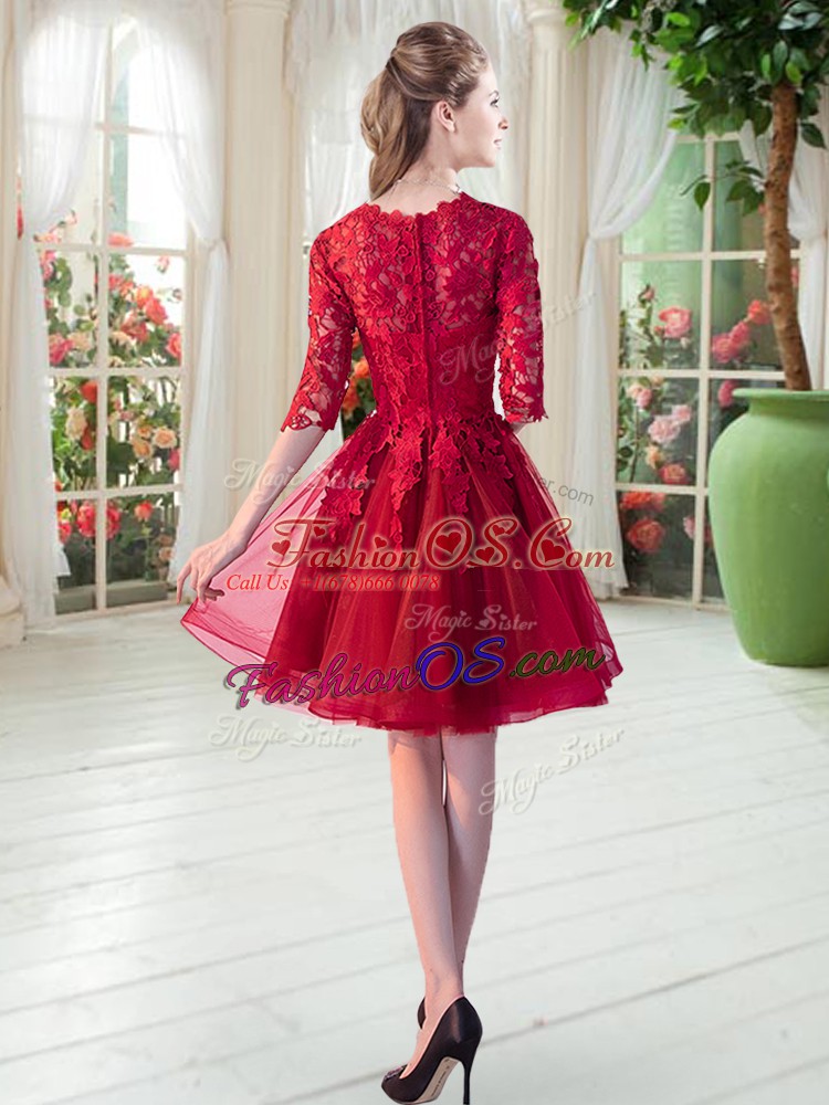 Admirable Lace Wine Red Zipper Half Sleeves Knee Length