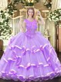 Admirable Lavender Ball Gown Prom Dress Military Ball and Sweet 16 and Quinceanera with Beading and Ruffled Layers Scoop Sleeveless Zipper