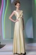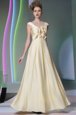 Home >  Prom Dresses >  Unique Prom Dresses > Admirable Light Yellow Scoop Side Zipper Beading and Ruching and Hand Made Flower Cap Sleeves