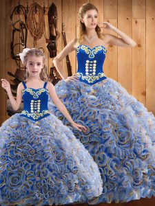 Admirable Multi-color Lace Up Sweetheart Embroidery Ball Gown Prom Dress Fabric With Rolling Flowers Sleeveless Sweep Train