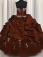 Home >  Quinceanera Dresses >  In Stock Quinceanera Dresses > Admirable Olive Green Organza Lace Up Sweetheart Sleeveless Floor Length Quinceanera Dress Beading and Appliques and Pick Ups