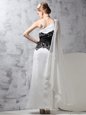 Home >  Prom Dresses >  Elegant Prom Dresses > Admirable One Shoulder Sleeveless Chiffon Floor Length Side Zipper Prom Dress in White And Black for with Lace
