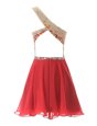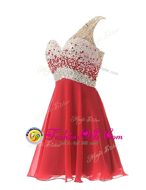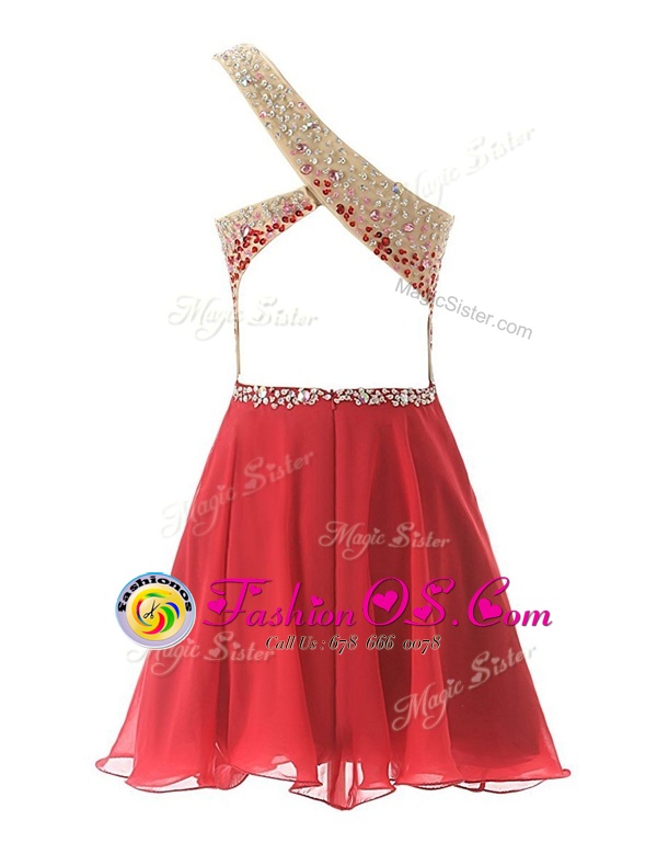 Admirable Red One Shoulder Criss Cross Beading Evening Dress Sleeveless