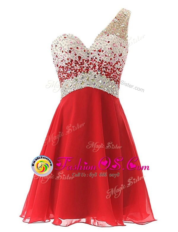 Home >  Prom Dresses >  Perfect Prom Dresses > Admirable Red One Shoulder Criss Cross Beading Evening Dress Sleeveless