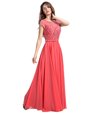 Admirable Scoop Beading Formal Evening Gowns Watermelon Red Zipper Cap Sleeves Floor Length