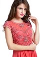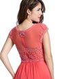 Home >  Evening Dresses > Admirable Scoop Beading Formal Evening Gowns Watermelon Red Zipper Cap Sleeves Floor Length
