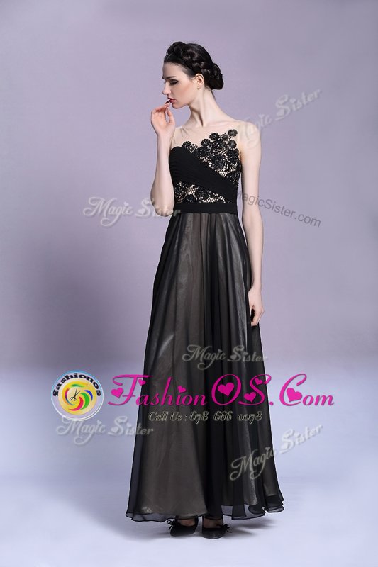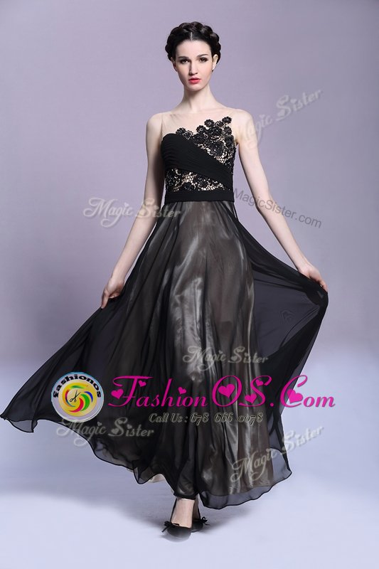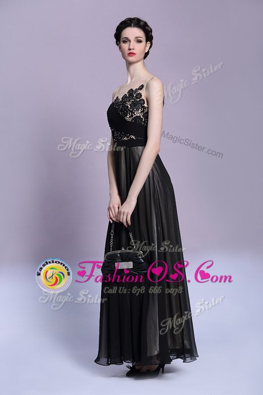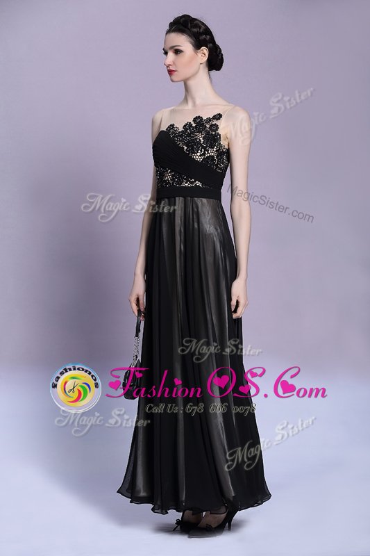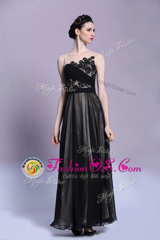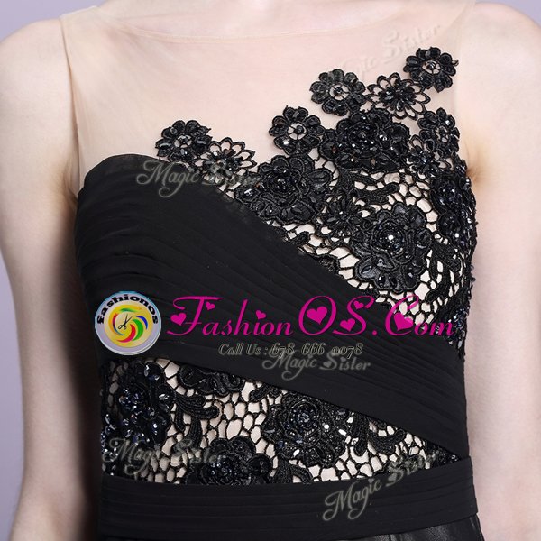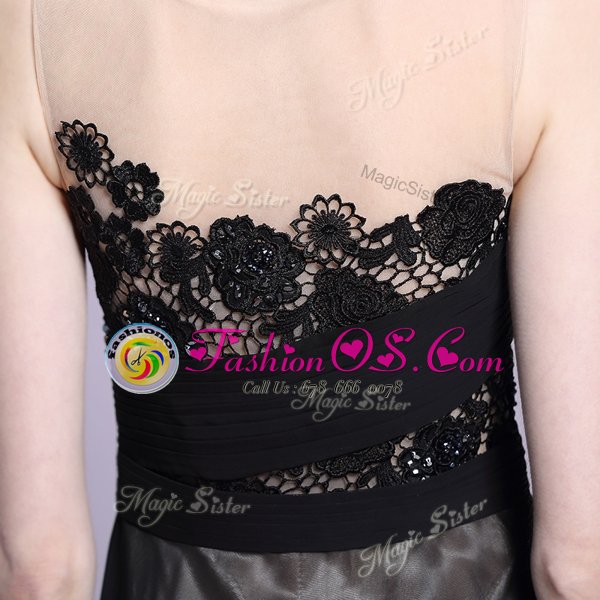 Admirable Scoop Sleeveless Side Zipper Dress for Prom Black Chiffon