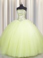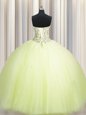 Admirable Sequins Big Puffy Floor Length Ball Gowns Sleeveless Light Yellow Ball Gown Prom Dress Lace Up