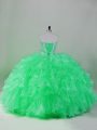Admirable Sleeveless Floor Length Beading and Ruffles Lace Up Sweet 16 Quinceanera Dress with Green