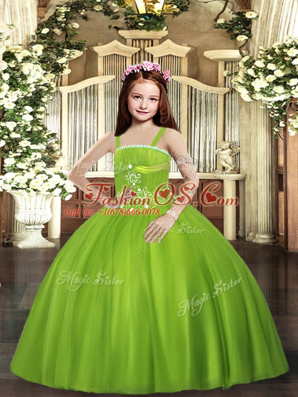 Home >  Special Occasion Dresses >  2018 Little Girl Pageant Dresses > Admirable Sleeveless Floor Length Beading Lace Up Little Girls Pageant Dress with Olive Green