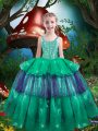 Admirable Sleeveless Organza Floor Length Lace Up Sweet 16 Dresses in Green with Beading and Ruffled Layers