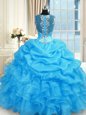 Admirable Sleeveless Organza Floor Length Zipper Quinceanera Dresses in Baby Blue for with Beading