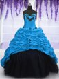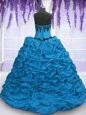 Home >  Quinceanera Dresses >  Fashionable Quinceanera Dresses > Admirable Taffeta Sweetheart Sleeveless Sweep Train Lace Up Appliques and Pick Ups Quinceanera Dresses in Blue