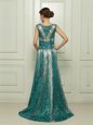 Admirable Teal Column/Sheath Scoop Sleeveless Tulle Floor Length Zipper Beading and Sequins Prom Party Dress