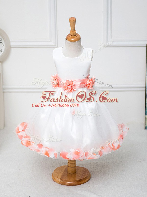 Admirable White Little Girls Pageant Dress Wedding Party with Appliques and Hand Made Flower Scoop Sleeveless Zipper