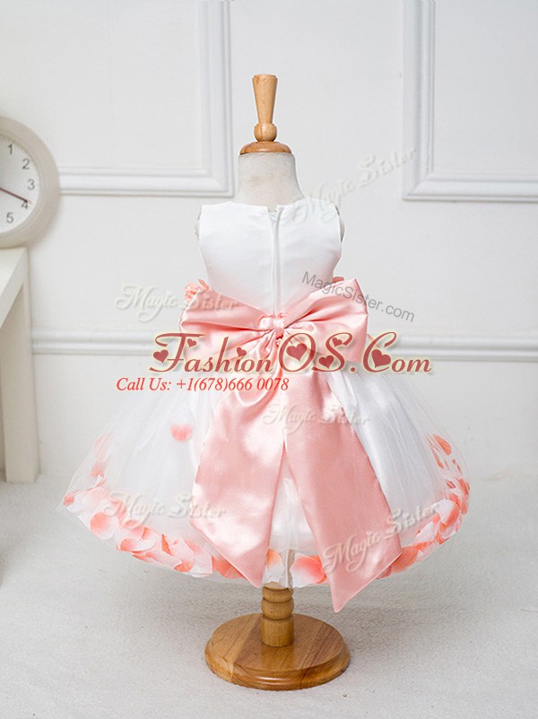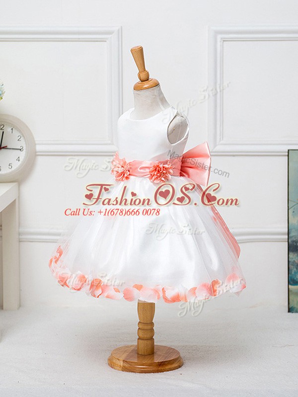 Home >  Special Occasion Dresses >  New Style Little Girl Pageant Dresses > Admirable White Little Girls Pageant Dress Wedding Party with Appliques and Hand Made Flower Scoop Sleeveless Zipper