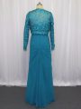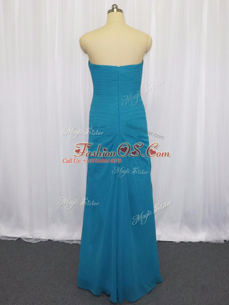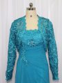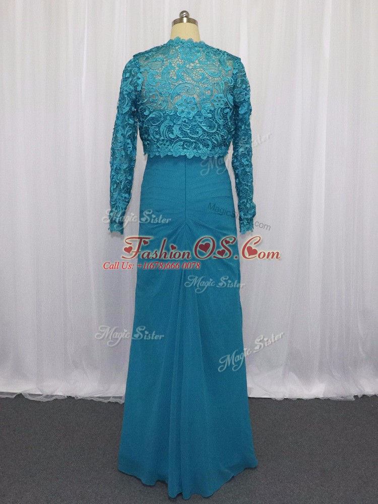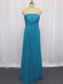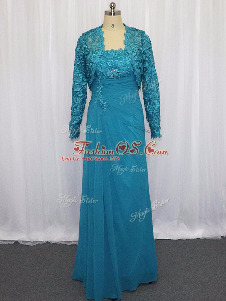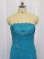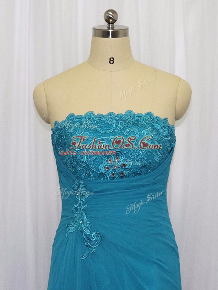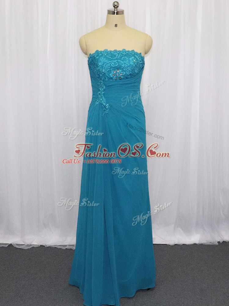 Adorable Blue Column/Sheath Chiffon Strapless Sleeveless Lace and Appliques Floor Length Zipper Mother Of The Bride Dress