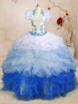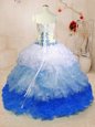 Adorable Brush Train Ball Gowns Quinceanera Dress Baby Blue Sweetheart Organza Sleeveless With Train Lace Up