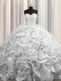 Home >  Quinceanera Dresses >  Custom Made Quinceanera Dresses > Adorable Court Train Grey Organza Lace Up Sweet 16 Quinceanera Dress Sleeveless Floor Length Beading and Pick Ups