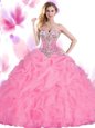 Adorable Orange Red Lace Up Sweetheart Beading and Ruffles Quinceanera Gown Tulle Sleeveless