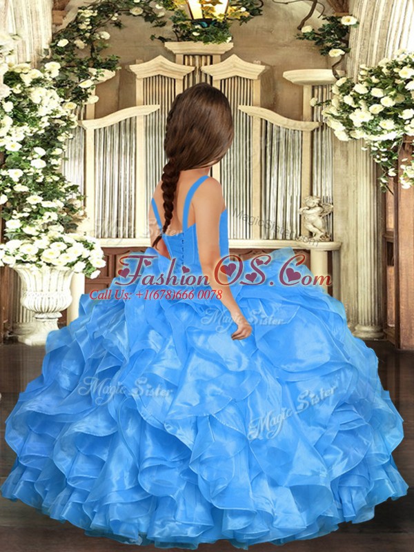 Adorable Organza Sleeveless Floor Length Child Pageant Dress and Ruffles