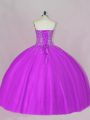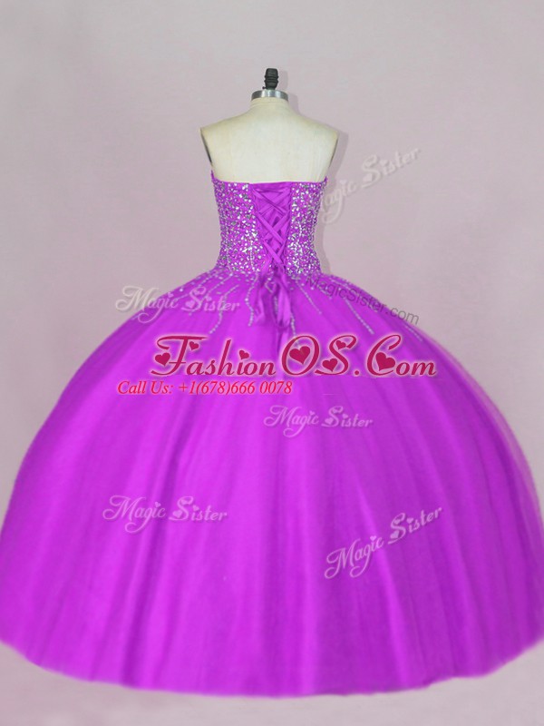 Adorable Purple Tulle Lace Up Sweetheart Sleeveless Floor Length Sweet 16 Dress Beading