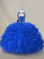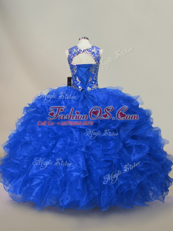 Adorable Royal Blue Lace Up Scoop Ruffles and Sequins 15 Quinceanera Dress Organza Sleeveless