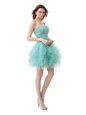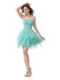 Home >  Special Occasion Dresses >  Cocktail Dresses > Adorable Ruffled Mini Length A-line Sleeveless Turquoise Club Wear Zipper