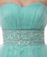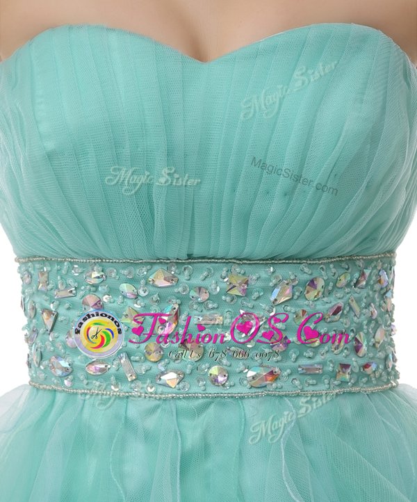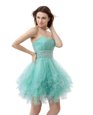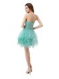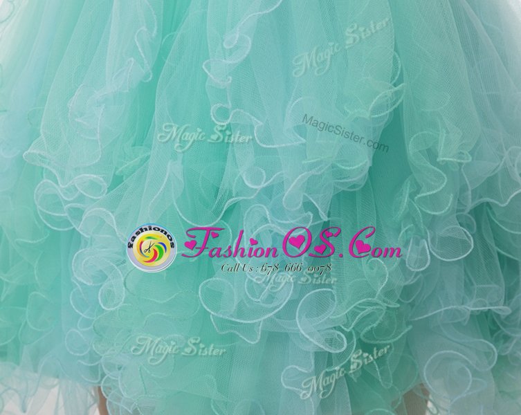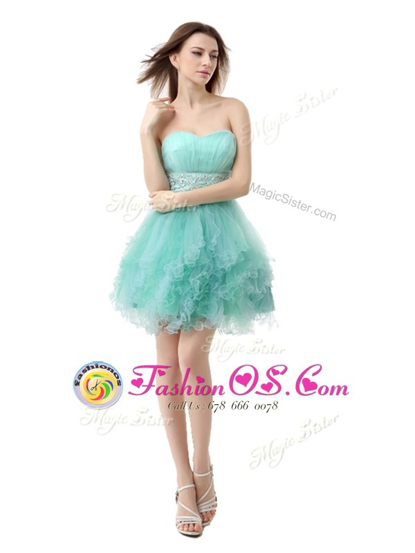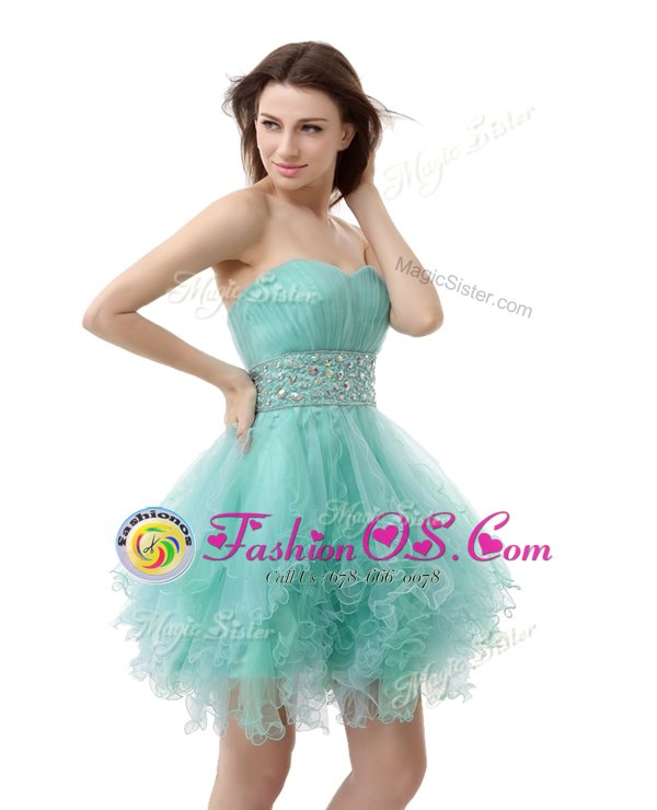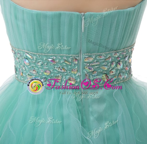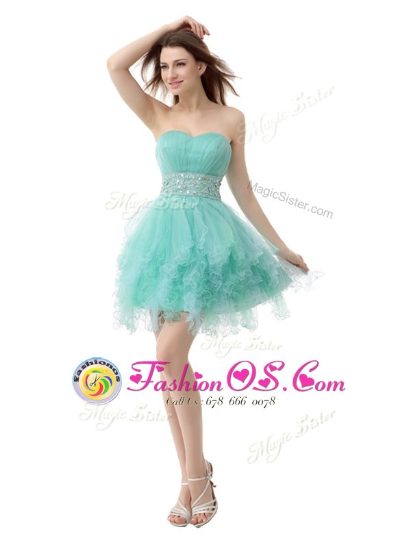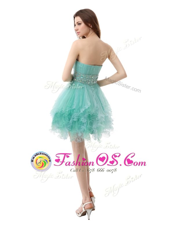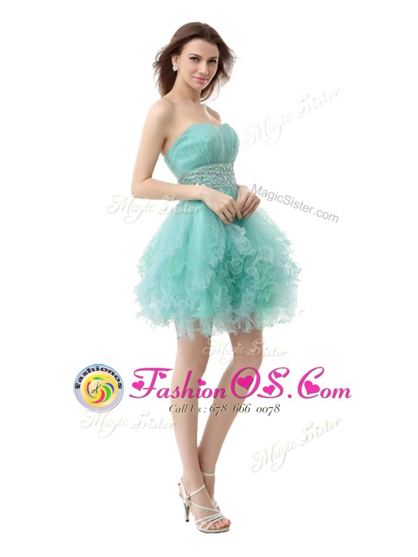 Adorable Ruffled Mini Length A-line Sleeveless Turquoise Club Wear Zipper