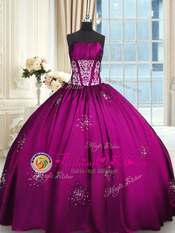 Home >  Quinceanera Dresses >  In Stock Quinceanera Dresses > Adorable Sleeveless Floor Length Beading and Appliques and Ruching Lace Up Quinceanera Gown with Fuchsia
