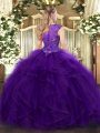 Adorable Sleeveless Tulle Floor Length Zipper Quinceanera Gown in Brown with Beading and Ruffles