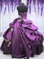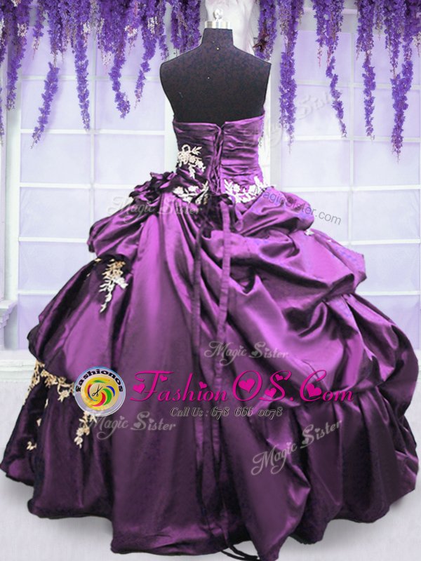 Adorable Taffeta Strapless Sleeveless Lace Up Appliques and Pick Ups Sweet 16 Dress in Purple