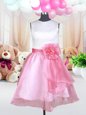 Adorable White and Pink And White A-line Scoop Sleeveless Organza Mini Length Zipper Hand Made Flower Little Girls Pageant Dress Wholesale
