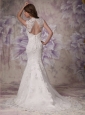 Elegant and graceful wedding dress! The lace pattern and the sparckled crystals all over features meticulous and attractive with narrow waistband accented with crystals. The mermaid silhouette will curve your figure and will show your well-toned shape. The open back and the button closure makes this dress special and charming, it is the dream dress for the big day!